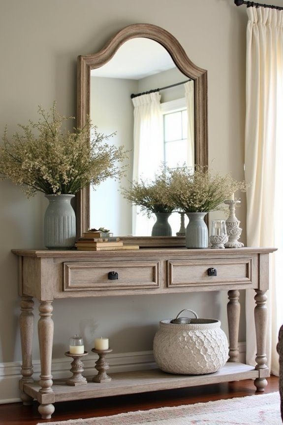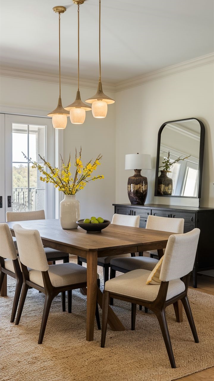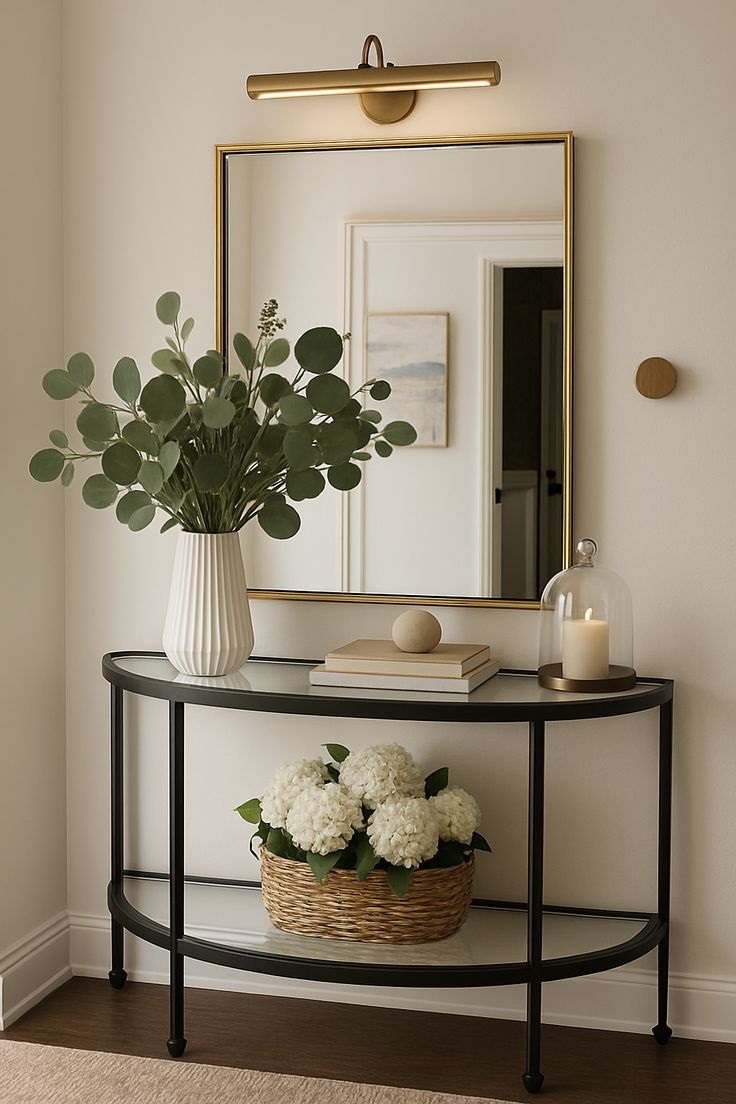 آینه بالای کنسول باید متناسب با عرض آن باشد — نه بیش از اندازه بزرگ که فضا را تسخیر کند و نه کوچک که تناسب را از بین ببرد. معمولاً ارتفاع آینه تا سقف باید حدود نصف ارتفاع دیوار بین کنسول و سقف باشد تا هماهنگی عمودی فضا حفظ شود.